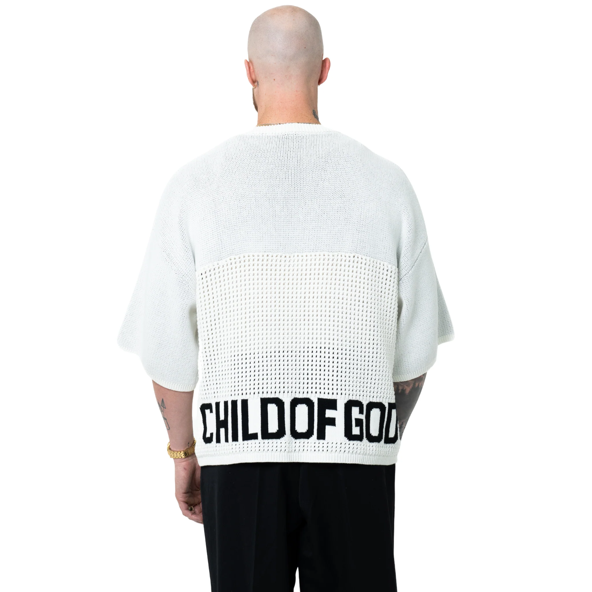 - CHILD OF GOD: Just as a jersey would show a last name as a sign of who you represent, emblazoned across the back is "CHILD OF GOD,"; this serves as a bold proclamation of your identity and a means to inspire conversations about faith and devotion.